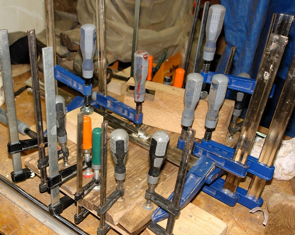 Een grote spleet in de plank is gevuld en de beschadigingen van de omkasting zijn bijgewerkt. Morgen de laatste dingetjes en dan is het af.
