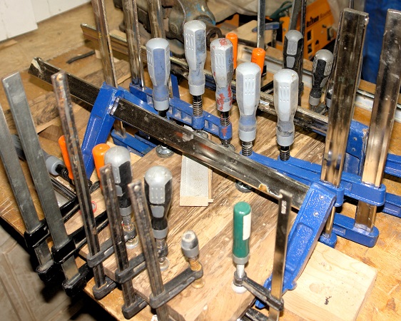 Nadat alle kitresten verwijderd waren, kon er opnieuw gelijmd worden en dit keer wel met de opschuimende PU-lijm. Helemaal goed ging dit ook niet, want tijdens het kitten scheurde de kitpatroon open. Het lijmen van de latjes ging gelukkig nog net en al tijdens het lijmen was de kleefkracht merkbaar. Onbegrijpelijk dat dit gisteren fout ging.