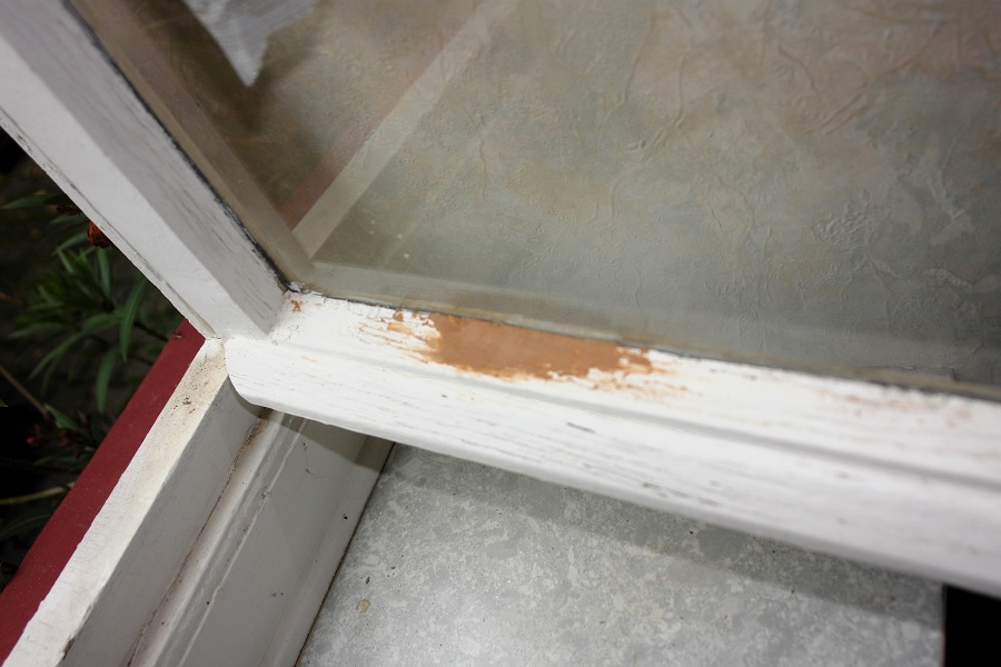 Omdat het weer het toe liet, kon de onderkant van een woonkamerraam onder handen genomen worden. Hier zat een slechte plek in, die nu gevuld is met houtvuller. Als die droog is en het weer is acceptabel, dan kunnen er geschuurd en geverfd worden.