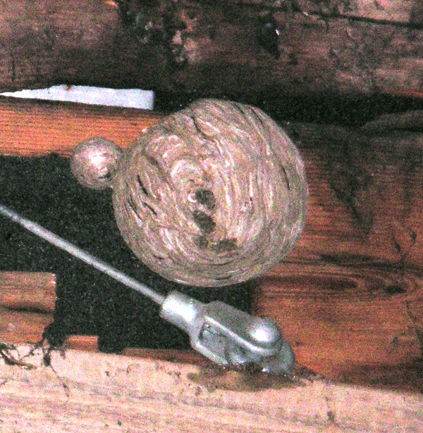 Toch gebeurde dit bijna, want op 20 september 2008 vonden we tegen een nokbalk een wespennest met een diameter van ca. 30 cm. met een kleinere uitvoering ernaast.
