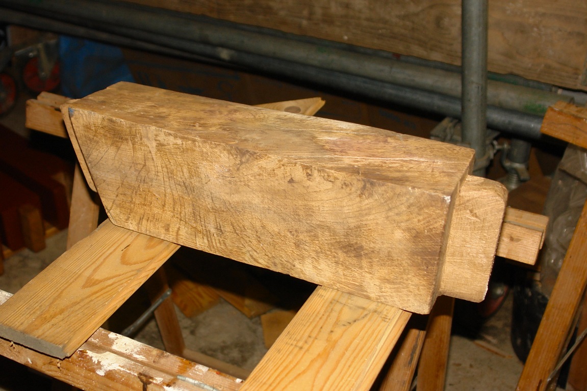 Hierna was de volgende aan de beurt; die gaan we maken van een stuk van een oude staander. Er was nog tijd om de balk op lengte te zagen en morgen gaan we verder.