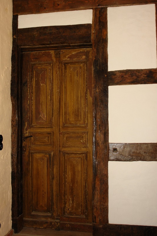Dat hij zo geïnteresseerd is in de deur, kwam omdat restaurateur is van oude deuren en meubels. We hebben zijn kaartje en daarmee een adres om t.z.t. de deur te laten restaureren. Hij vond het goed om te weten, dat wij de deur sowieso niet zouden vervangen.