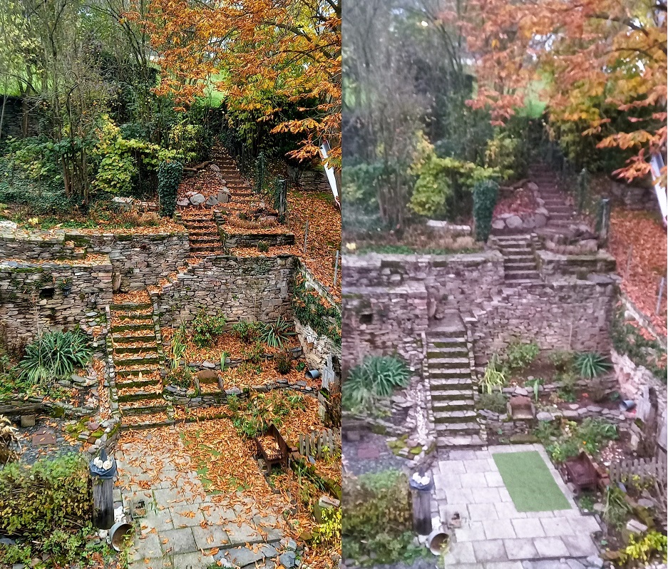 Na het houtrek nog iets verder gevuld te hebben en nog wat hout opgeruimd (= ergens anders neergelegd) te hebben, was de tuin aan de beurt. Het bladerenruimen was er afgelopen week niet van gekomen, maar het is wel handig om het vandaag wel te doen. Voor morgen en de dagen erna is er regen voorspeld en dat verandert de makkelijk opveegbare dorre bladeren al snel in een glibberige brei.