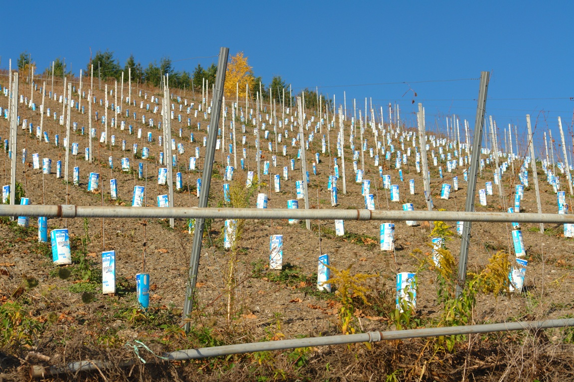 Op de balken van gisteren kwamen nu de OSB platen en dat ging vrij probleemloos; zie hier. We hadden geluk met het weer. Onder een blauwe lucht in een mooie herfstzon zagen de wijnbergen rondom Kröv er ook wel aardig uit.