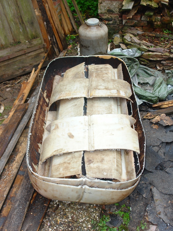 Bij de koop stond er in de koeienstal een kunststof olietank van ca. 2.000 liter en omdat deze vorig jaar enorm in de weg stond hadden we hem buiten gezet. Daar stond die ook in de weg, maar iets minder. Omdat we de volgende keer met de aanhanger komen, hebben we de tank in stukken gezaagd tot een wat handzamer formaat. Er bleek ook nog ca. 40 liter huisbrandolie in te zitten en die hebben we in een soort jerrycan gedaan.