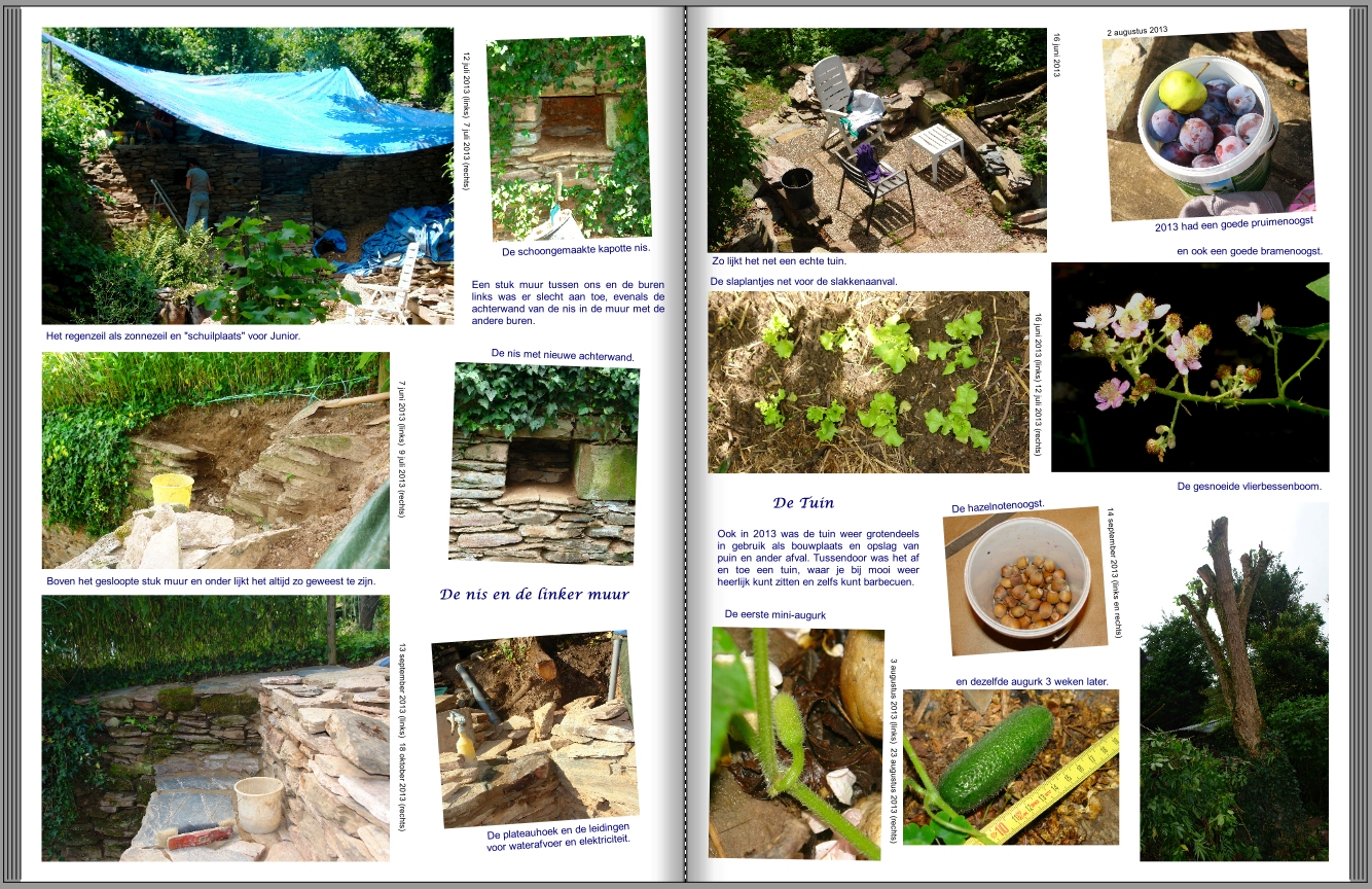 De voortgang van de tuintrap en tuinmuur is ook een vast onderdeel van het boek, evenals de tuin, die nog steeds vaak als opslagplaats van bouwmateriaal en rommel wordt gebruikt. Andere vaste rubrieken zijn de gevonden voorwerpen en foto’s van het pand.