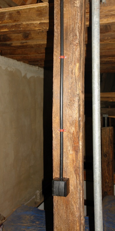 Morgen gaat de 2e laag erop. Als die droog is, dan kunnen de platen er definitief op. Omdat de OSB-platen er definitief op gaan, moet al het werk in de wand gedaan zijn. Dit was o.a. de ventilatie. Veelal onbedoelde natuurlijke ventilatie is er overal in het pand meer dan genoeg en vandaag hebben we een begin gemaakt met een elektrische ventilator.